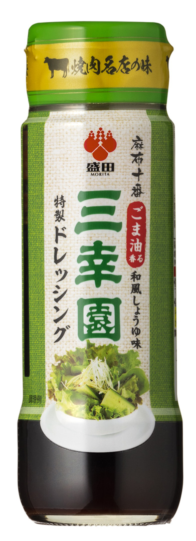 三幸園人気サイドメニュー「特製サラダ」のドレッシングの「ごま油の風味」と「コク」を再現。厳選しブレンドした醤油に、風味豊かなごま油、ビーフブイヨン等を加え、コクと深みのある味わいに仕上げました。