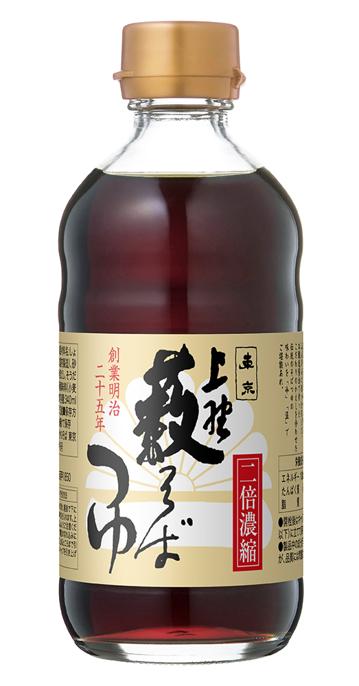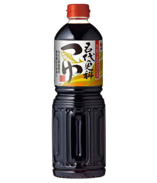 本醸造しょうゆに厳選したうるめいわし、かつお、昆布のだしを合わせてつくった旨みたっぷりの濃縮つゆです。