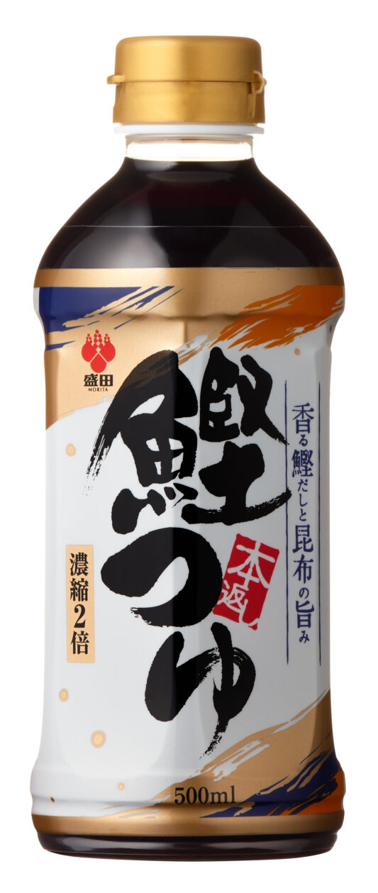 本返しとは、味をまろやかに仕上げるために醤油とみりんに砂糖を溶かし加熱した後に低温でねかせる、ひと手間かける伝統製法です。丸大豆しょうゆで仕立てた盛田秘伝の本返しに厳選だしを加えた風味豊かなつゆです。