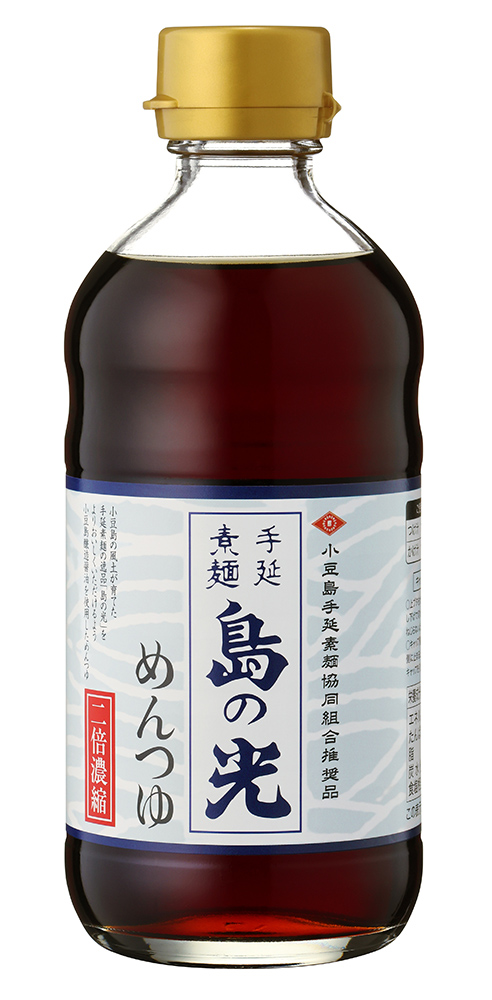 小豆島の風土が育てた手延素麺の逸品「島の光」。手延独特のコシと舌ざわりが自慢です。この「島の光」をよりおいしく食べられるように作った「島の光めんつゆ」です。かつお節、うるめいわし節とこんぶなどの旨みを加えただし汁にじっくり熟成した本醸造しょうゆでバランスよく仕上ました。
